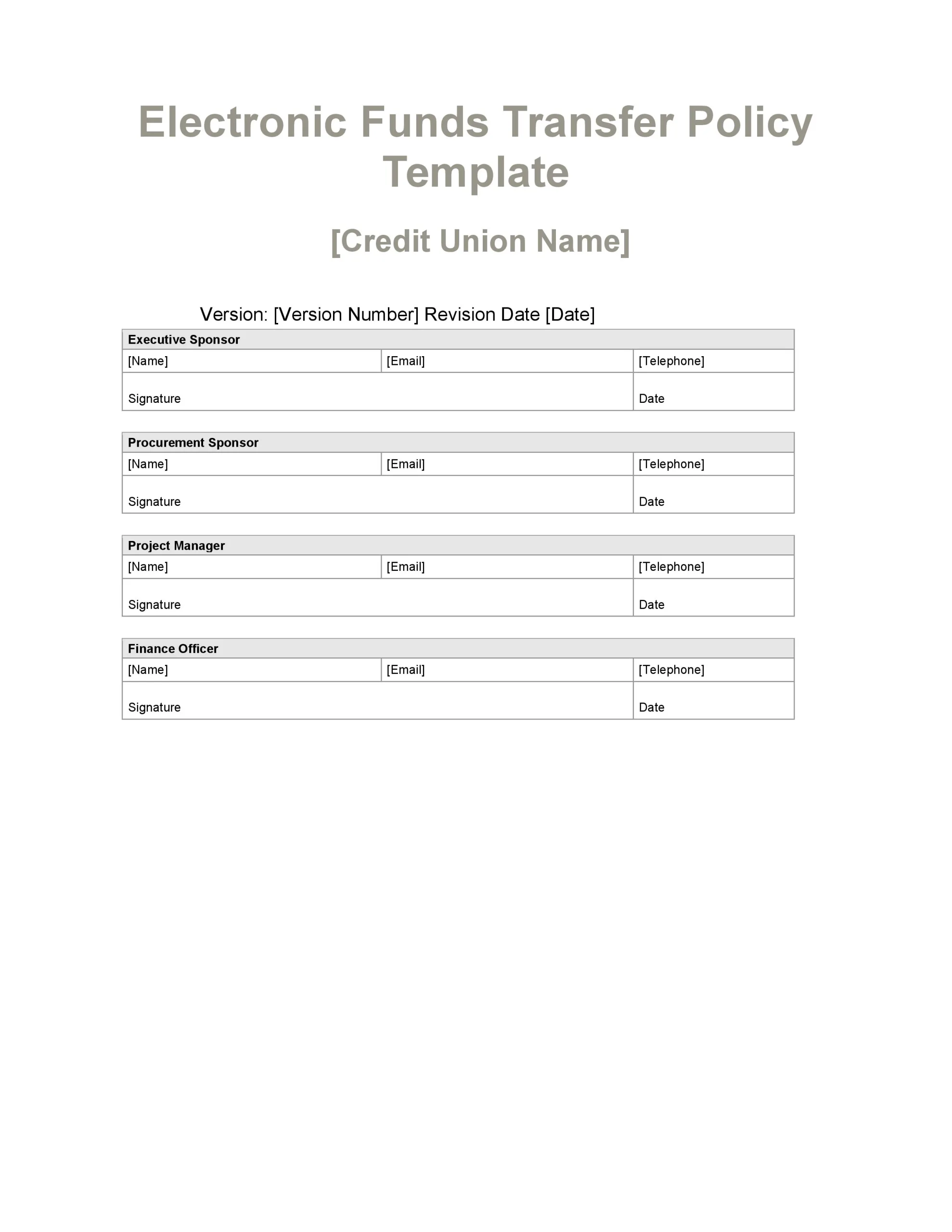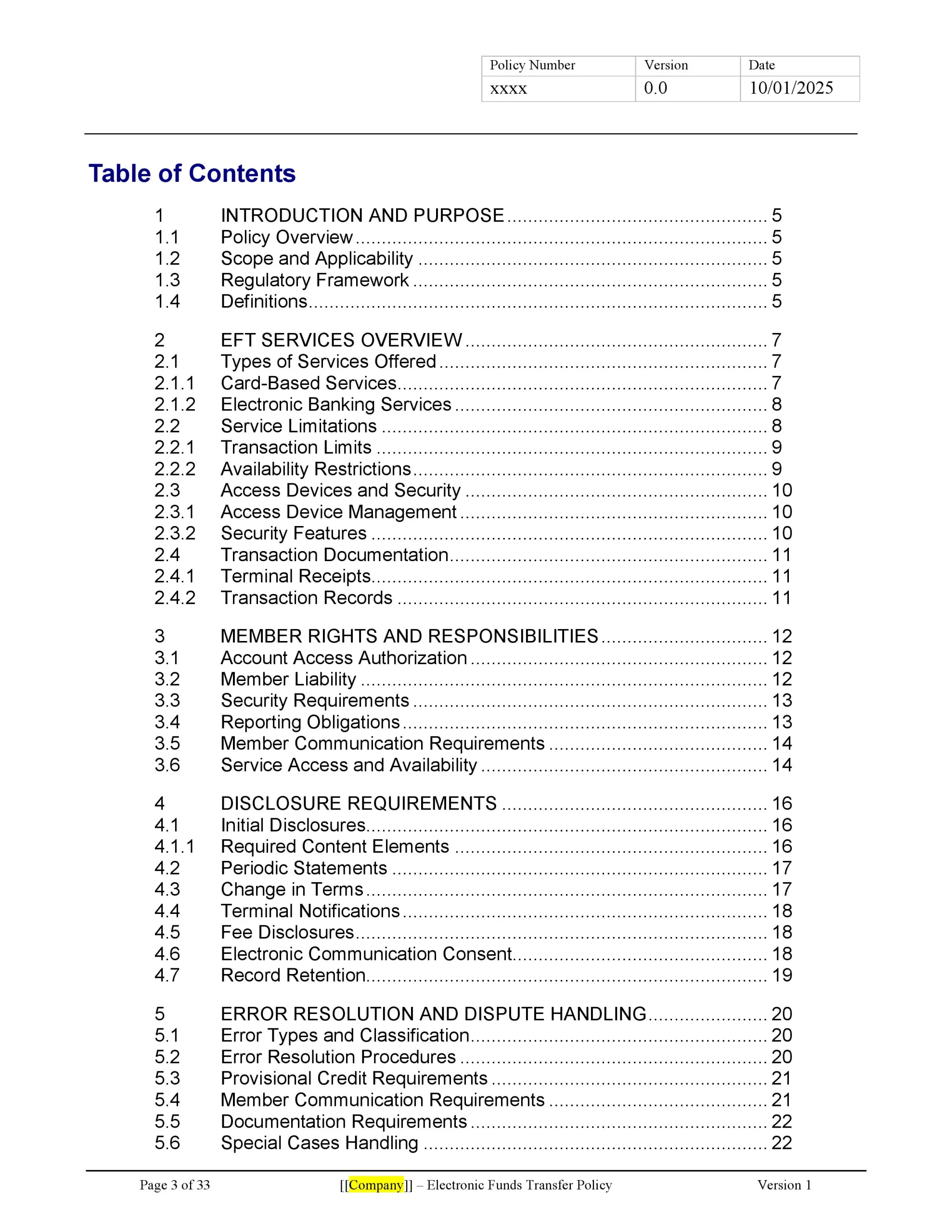 This comprehensive Electronic Funds Transfer Policy Template is an essential tool for credit unions seeking to establish clear guidelines and procedures for electronic fund transfers. The template covers all aspects of EFT services, including ATM transactions, direct deposits, point-of-sale transfers, telephone-initiated transfers, and online banking activities.