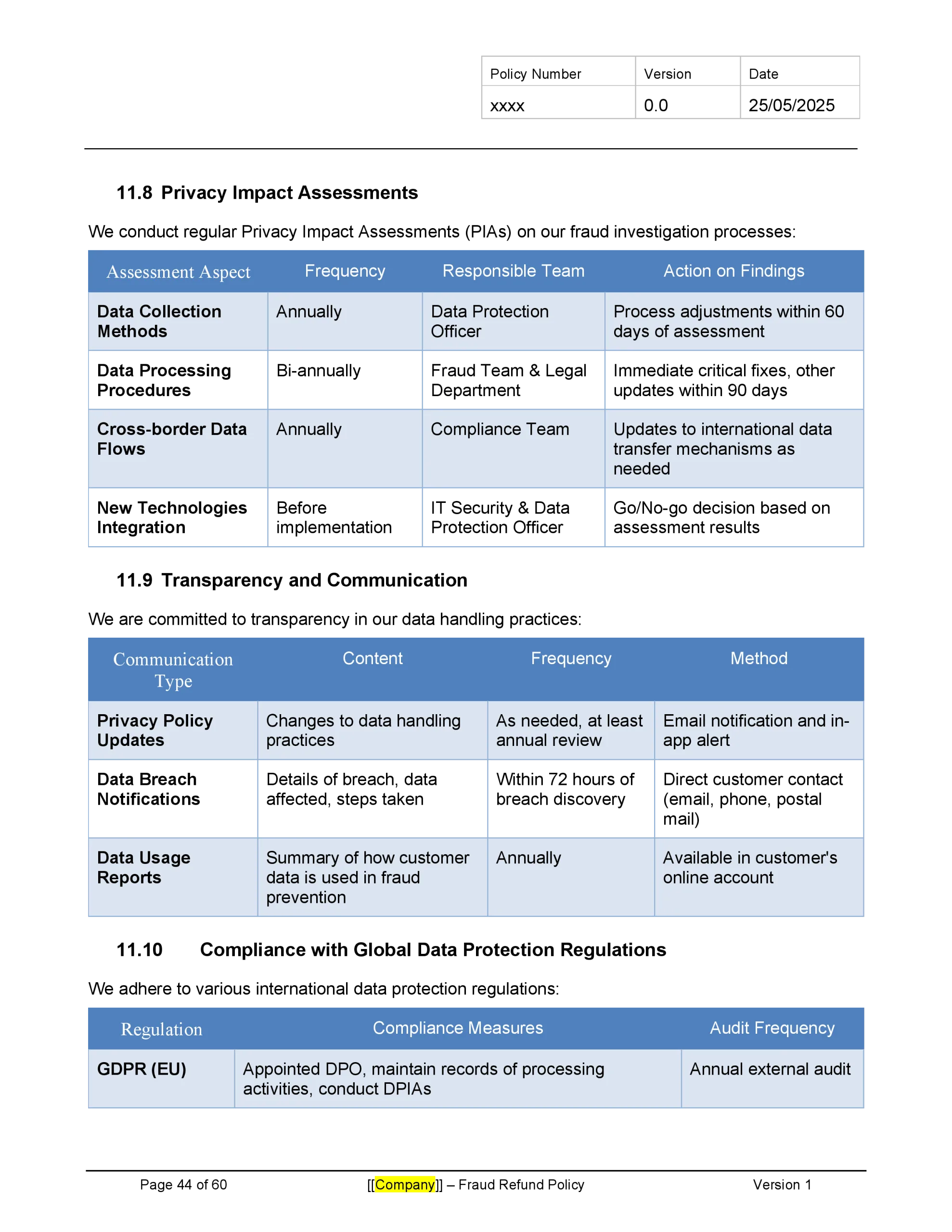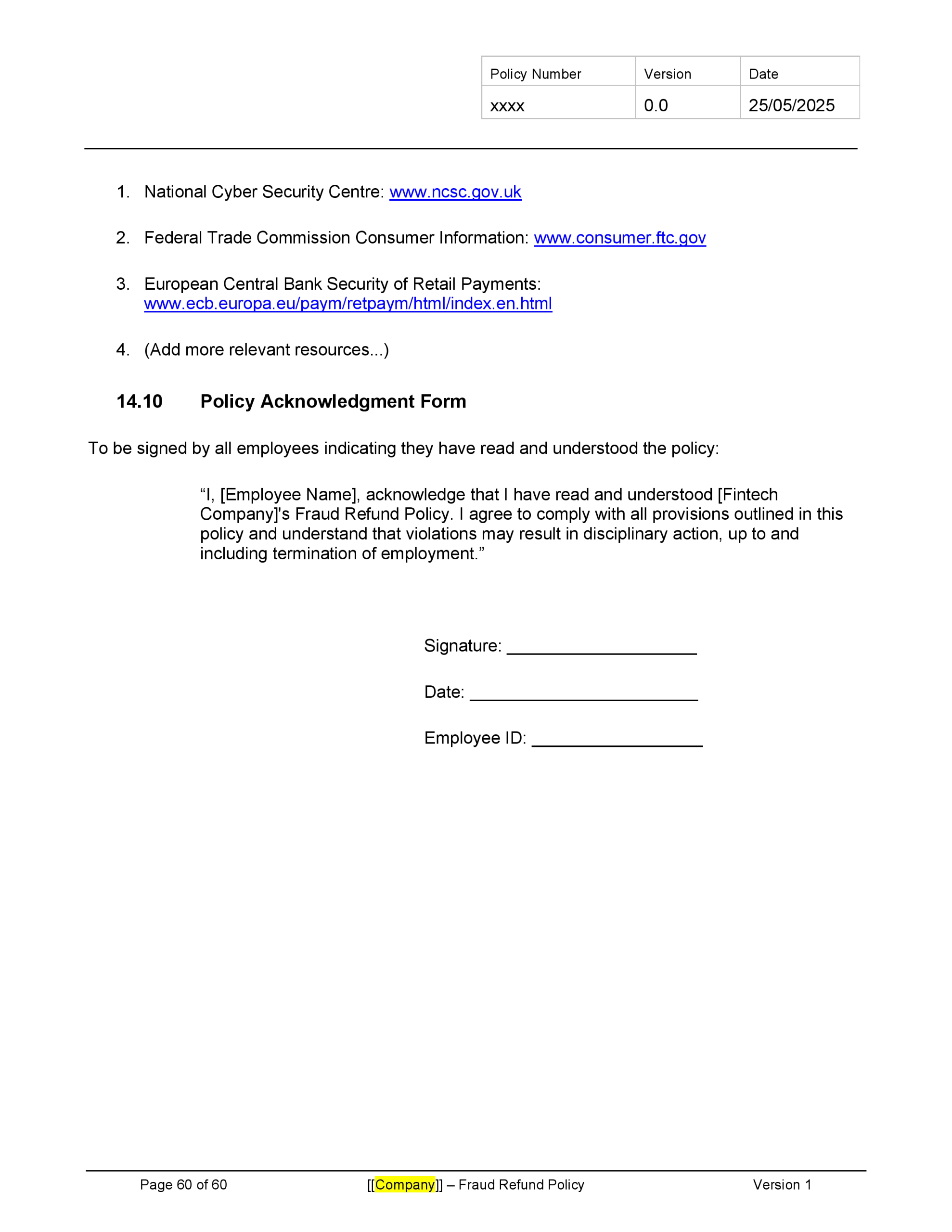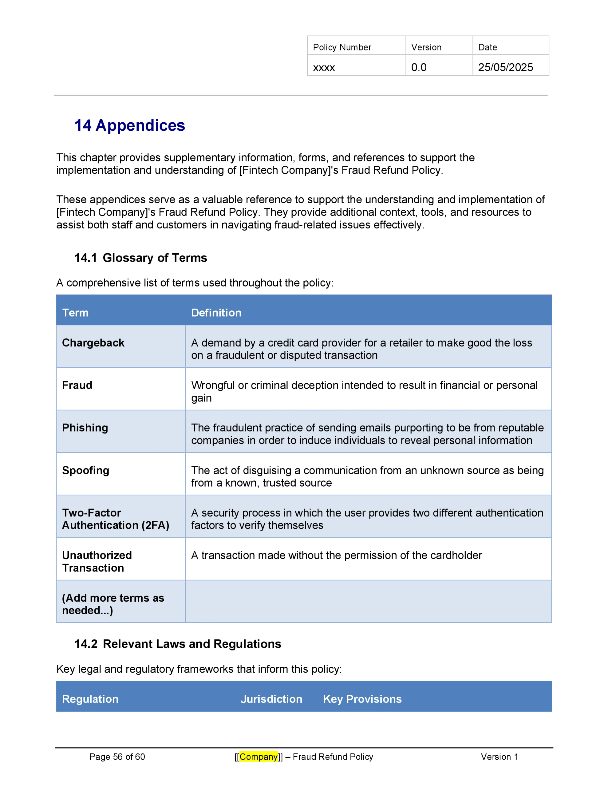 Customizable to fit your company’s specific risk profile and regulatory environment, this template provides a solid foundation for creating a comprehensive fraud refund policy that enhances customer trust while protecting the company from undue risk. Download now to strengthen your fintech’s approach to fraud management and demonstrate your commitment to customer protection.