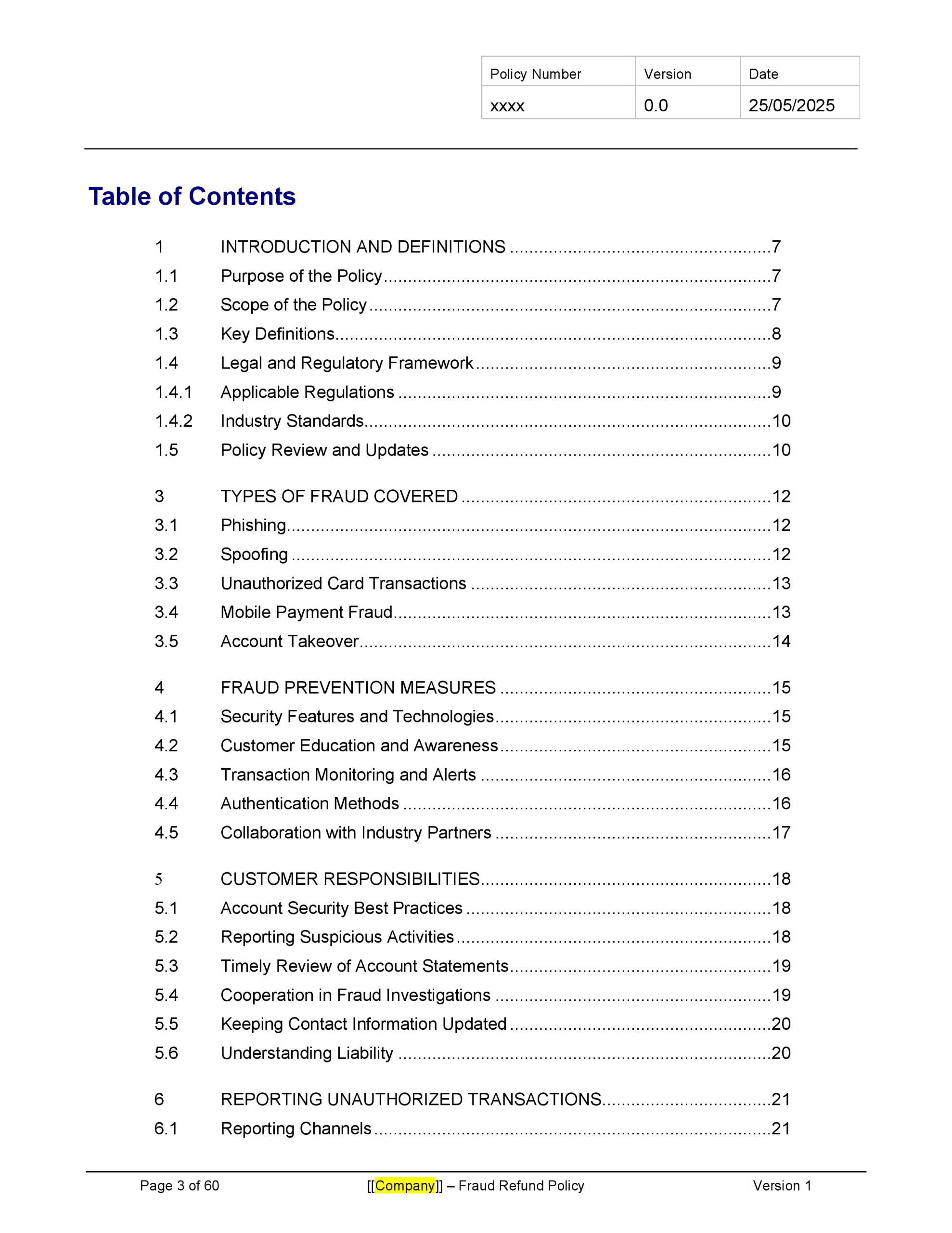 - Fraud Prevention Measures: Outlines proactive steps the company takes to protect customers from fraud.