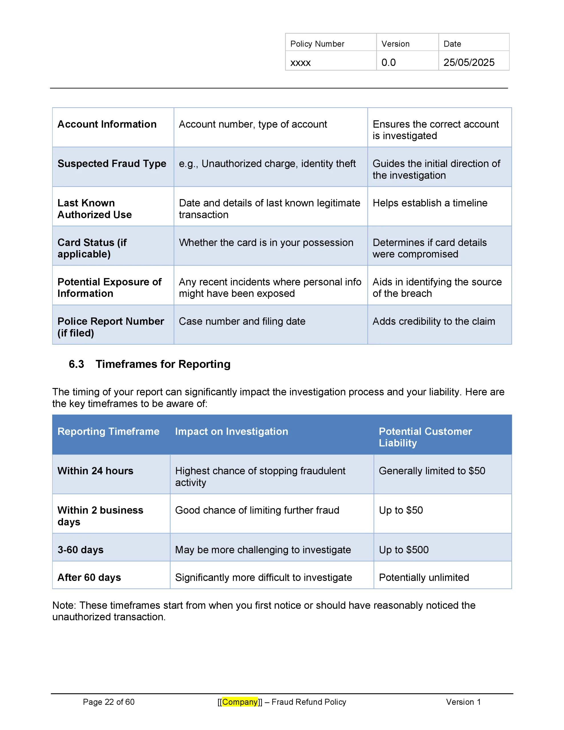 This template is ideal for fintech startups and digital banks aiming to implement a robust fraud refund process. It balances the need to protect customers from fraud with the necessity of encouraging responsible account management.