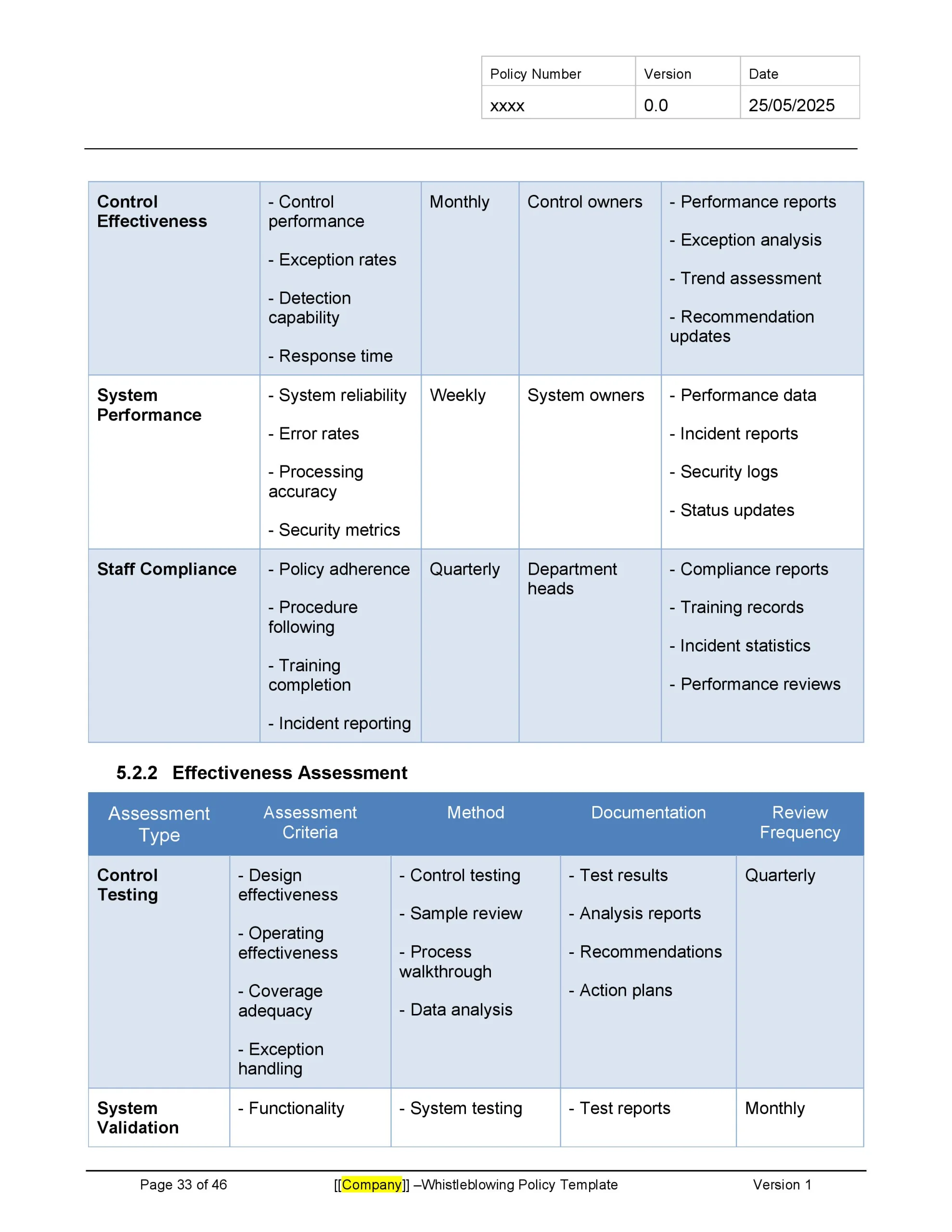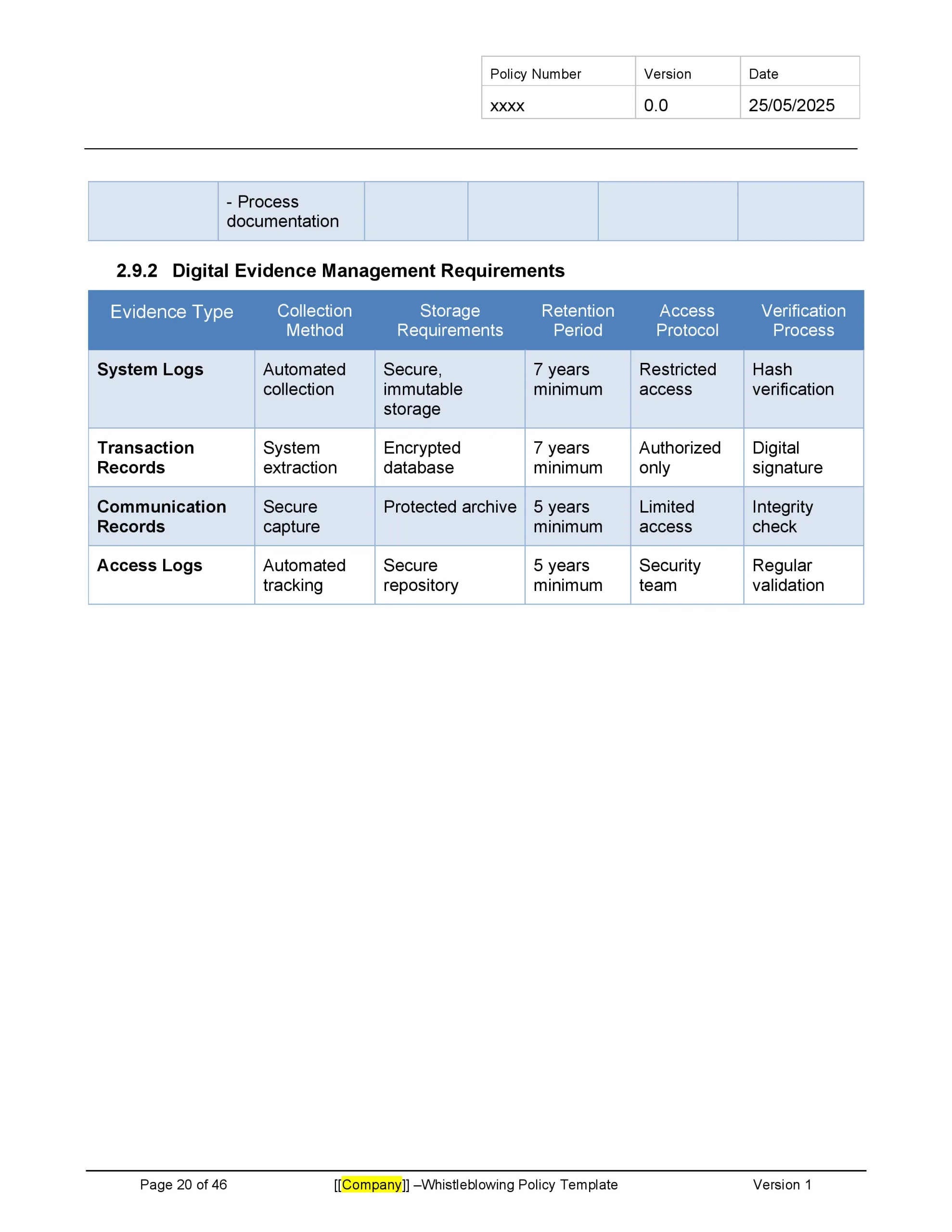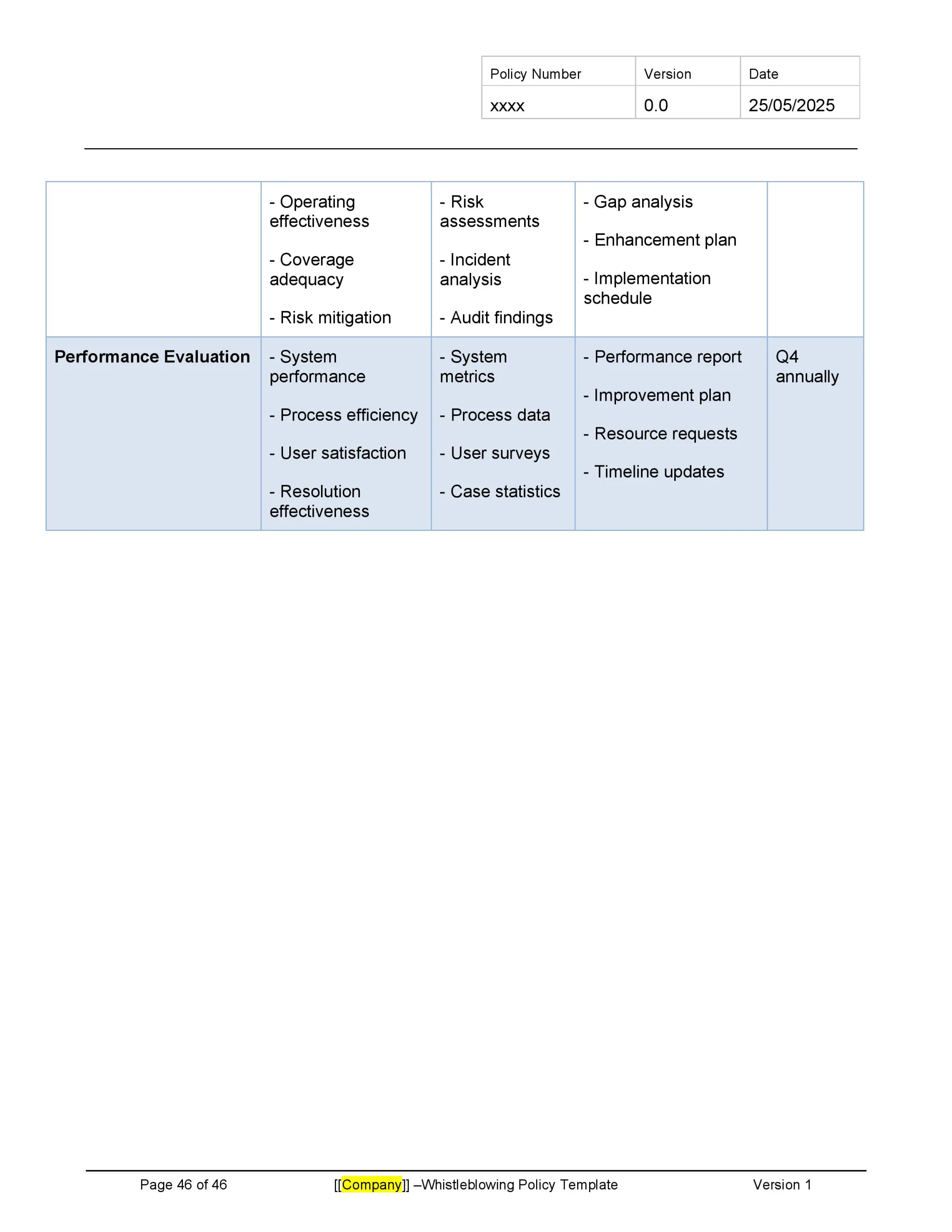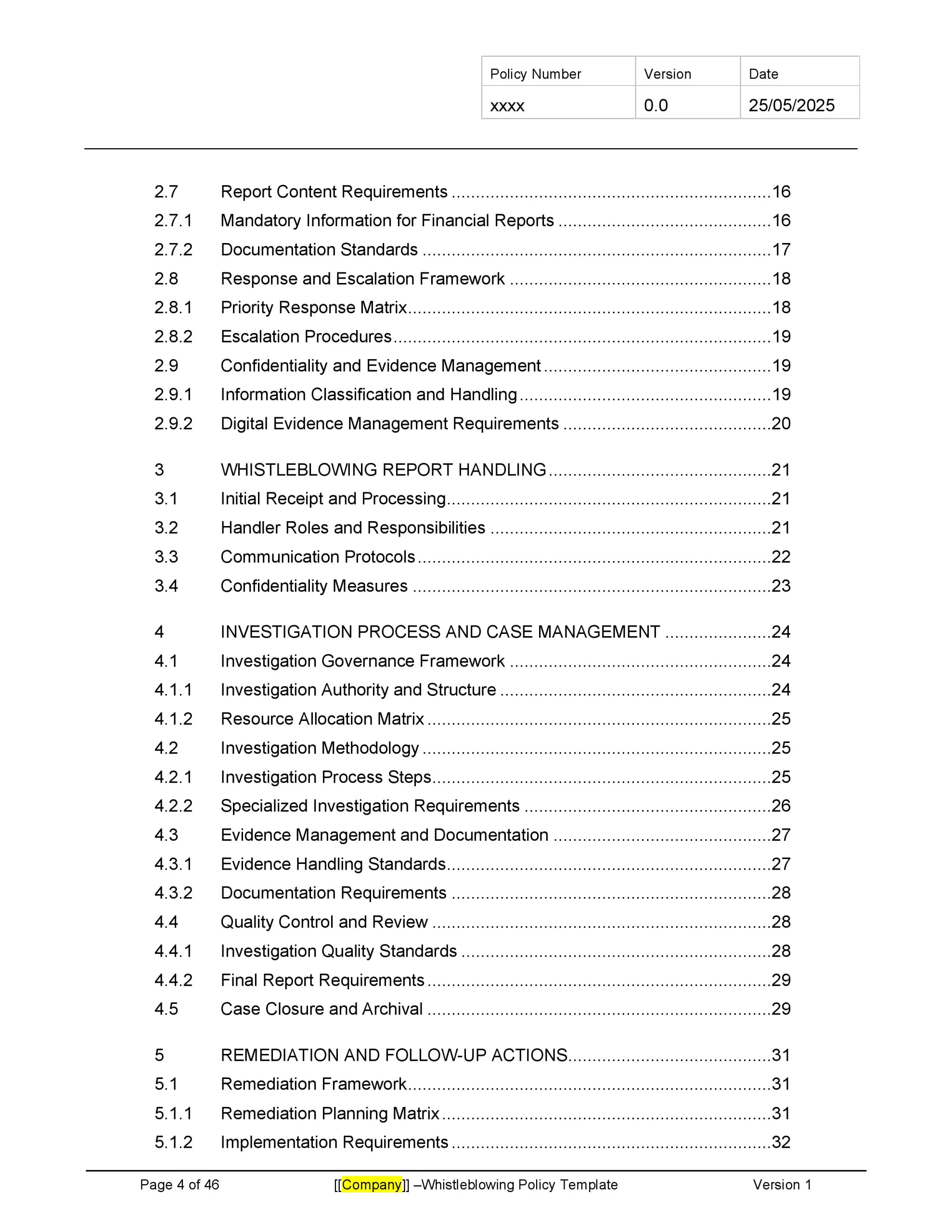 The whistleblower policy template includes clear guidelines for employees to report any concerns or suspicions they may have regarding unethical or illegal behavior. It also outlines the steps that the company will take to investigate and address any reported issues. The policy ensures that employees who report concerns in good faith will be protected from retaliation and that their confidentiality will be maintained throughout the investigation process.
