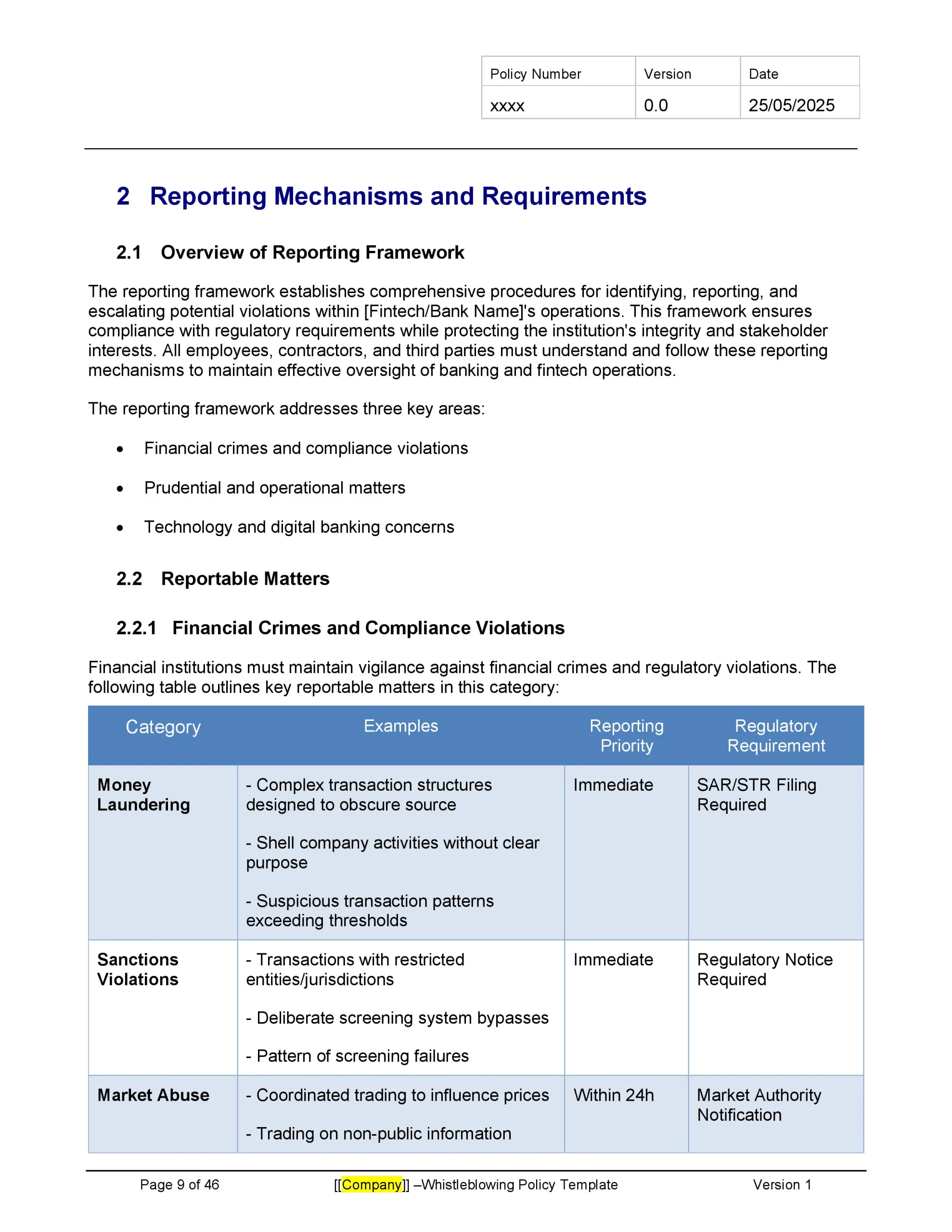Overall, the whistleblower policy template is an essential tool for aspiring fintech companies to establish a culture of transparency and accountability. By implementing this policy, companies can demonstrate their commitment to ethical behavior and build trust with customers and investors.